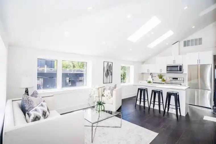 Welcome To Your Next Home, The Second Floor Of A Renovated Duplex. Open Concept With Large Windows, Vaulted Ceilings & Skylight Providing Lots Of Natural Light. East, South & West Exposures. 2 Bedroom Unit, Ensuite Laundry. Engineered Wood Floor, Great Cabinetry, Parking. Separate Private Entrance. Well Maintained and Managed