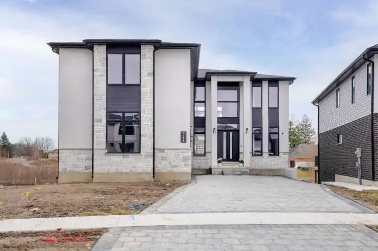 Welcome to this striking contemporary home offering over 3,800 sq. ft. of above-grade living plus a walk-out lower levelperfectly set on a premium lot backing onto a scenic stream and protected green space. Designed with dramatic architectural features, the home boasts soaring ceilings, oversized windows, a floating staircase, and high-end finishes throughout.The chefs kitchen features upscale Forno appliances, a waterfall island, full fridge/freezer, and a hidden pantry/prep area with a second dishwasher. The open-concept great room is anchored by a linear fireplace and built-in shelving, with direct access to a full-width deck overlooking the private backyard.Five spacious bedrooms include a luxurious primary retreat with a sitting area, walk-in dressing room, and spa-like ensuite. The lower level is an entertainers dream with a wet bar, wine storage, home theatre, gym, and bonus flex spaceall with walk-out access to a covered patio.Located minutes from trails, shopping, schools, and Hwy 401 access, this is modern luxury at its finest. Contact us today to learn more.