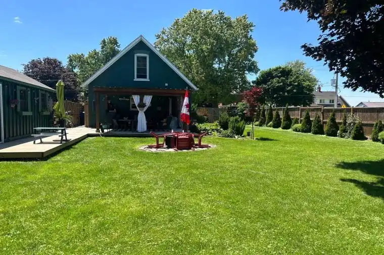 Freshly painted throughout within the past year, including professionally painted exterior. Updated kitchen with new cabinet hardware, sink, faucet, light fixtures, and newer appliances (fridge, gas stove, dishwasher, stacking washer/dryer). Second fridge located in exterior building. Recent improvements: New eavestroughs New fence and added decking New LVP flooring and trim in living and dining areas Restored stair treads with tiled risers and new bannisters New hot water tank Exterior building features a newer patio door and window, updated electrical brought to code, and its own independent electrical panel-ideal for a home business, studio, hobby space, or guest accommodation. Property highlights: large, fully enclosed backyard with double-gate access for large vehicles (RV, etc.) Unique rustic bedrooms with vaulted, cedar-lined ceilings and original beams Solid construction with three layers of brick Walking distance to a large park with full amenities, as well as public and Catholic elementary schools Quiet, friendly community Chatham only a 20-minute drive; three smaller communities 10-12 minutes away. Over 300 sq. feet Auxiliary building.