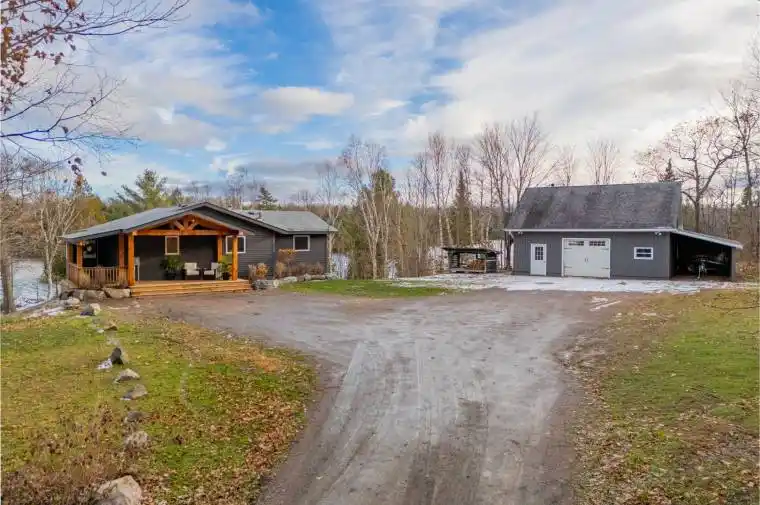 Escape city living and discover your ultimate sanctuary! Nestled on a beautifully wooded 2.5 Acres with 540 feet of private waterfront, this fully renovated cottage offers pristine, picturesque lake views – a true haven from the city chaos. The main floor boasts seamless open-concept living, where a cozy fireplace castswarmth while you unwind after an exhilarating day on the water. A true chef’s delight, the gourmet kitchen features a large walk-in pantry andample counter space, ready for all your culinary adventures. Find serenity in one of four charming bedrooms, each offering ample closet spacefor effortless storage. The expansive basement rec room is an entertainer’s dream, perfect for lively game nights or hosting cherished weekendguests, with an additional BONUS room providing flexible and extra sleeping arrangements. For ultimate hospitality, a detached garage featuresa tastefully finished living space above, comfortably accommodating an extra six-eight guests. Step outside to a world of endless delight: aprivate dock perfect for family swims and leisurely fishing on a highly sought after lake rated high in water quality, while the generous deck offthe kitchen offers panoramic views – ideal for sunrise coffees and memorable sunset toasts. Rejuvenate in the lakeside sauna that boasts astunning view of the water, or simply relax and welcome loved ones from the charming covered front porch. This isn’t just a cottage; it’s a dreamrealized, built for cherished memories built with family and friends! A MUST SEE