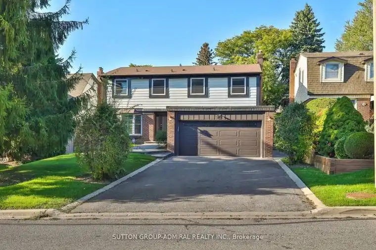 Original Owner Wycliffe-built family home on a premium 52 x 125 ft lot in the highly sought-after German Mills neighborhood. Surrounded by mature landscaping, perennial gardens, and gorgeous curb appeal with a newer limestone verandah, walkway, and concrete side path and patio, concrete curbs on driveway, privacy gate, fully fenced. Recent windows, front door, automatic garage door and freshly painted. Spacious layout with real wood beams and fireplace in the family room, hardwood floor under all broadloom, wall-to-wall pantry in kitchen, and mirrored cabinetry in dining room. Two stunning custom-designed 5pc+4pc bathrooms on the second floor (walk in shower). Real oak floors. Wiring home converted to co/lar receptacles and 200 amps. Hook-up for food disposal unit, and gas line for BBQ. Home offers tremendous potential with solid structure, large principal rooms, unfinished basement, and easy possibilities for kitchen extension or rear addition. Property has tremendous potential to be updated and/or be an extension of the home over the garage or out the back of the kitchen. Have piece of mind, property has been lovingly maintained by original owner. Walking distance to top-rated schools, parks, and trails with excellent access to amenities and transit. The home is currently empty; selected photos feature staged furnishings to help showcase layout and scale.