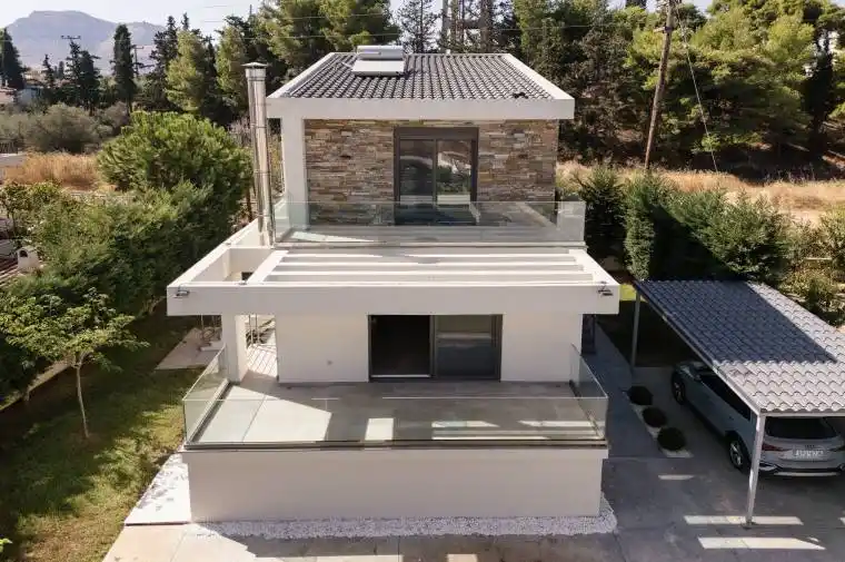 Welcome to Villa Azure. Built in 2019, this beautifully maintained detached home is ideally situated just steps from the beach, Mare West Mall, and some of the Corinthian Gulf’s most sought-after destinations-Kalamia, Loutraki Beach, Vrachati, Kiato, and Isthmia. Conveniently located only one hour’s drive from Athens, this property offers the perfect balance between coastal tranquility and city accessibility. Offering 170 sqm of interior living space on a 500 sqm plot, the residence features 2+1 bedrooms and 4 bathrooms, with a basement apartment and a private entrance-perfect for guests or additional income. Enjoy two expansive terraces: one off the main living area and another from the primary bedroom, both overlooking the stunning Corinthian Gulf. Outdoor living is enhanced by a beautifully crafted stone BBQ area, ideal for entertaining family and friends. Modern comforts include a fully equipped security system, automated gate with mobile app control, landscaped grounds with automatic irrigation system and tree lined for added privacy, an upgraded drive-in carport, and three storage rooms. Eligible for the Golden Visa program, this property is not just a home but a lifestyle investment-blending timeless architecture with exceptional seaside living. Property is listed for 430,000.00 Euro