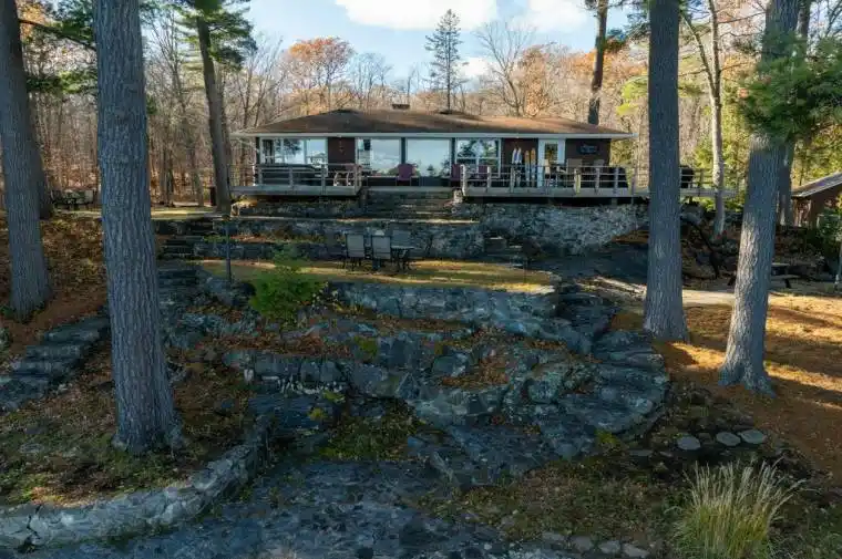 Set yourself upon an exclusive waterfront property framed by mature forest, exceptional privacy across five acres, and more than 500ft of premium frontage overlooking secluded islands on a premier lake with a natural sandy entry as well a deeper entry point. Welcome to 1022 Fosters Lake on renowned Kashwakamak Lake. This classic cottage has been tastefully modernized and lovingly cared for, offering predominantly southern exposure over an impressive shoreline. As part of the Mississippi paddle route, you’ll discover countless islands, hidden coves, and quiet landscapes waiting to be explored. Stretching roughly 17km, the lake invites every water activity to be experienced. Exceptional boating and fishing begin from your private boat launch – just one of the many elevated features this property presents. The Canadian Shield is seamlessly integrated into soft tiers throughout the grounds, offering gentle slopes and striking vistas. Guests will admire the charm of the detached bunkie with loft, while hobbyists will value the expansive four-car barn garage and the additional built-in heated garage ideal for winter parking. Inside, the residence is designed to highlight panoramic views of the lake and islands. Step through the door onto a spacious deck with hot tub, where year-round stargazing and open-air relaxation await. Enjoy the private on-site trails or venture to nearby networks offering four-season recreation. Convenient to amenities and cultural attractions yet wrapped in tranquility and seclusion, this unique property captures the essence of premier waterfront living. Within easy reach of Ottawa and the GTA, it offers an effortless escape for year-round enjoyment or full-time living. Welcome to the Land O’ Lakes-where elevated lakefront living begins.