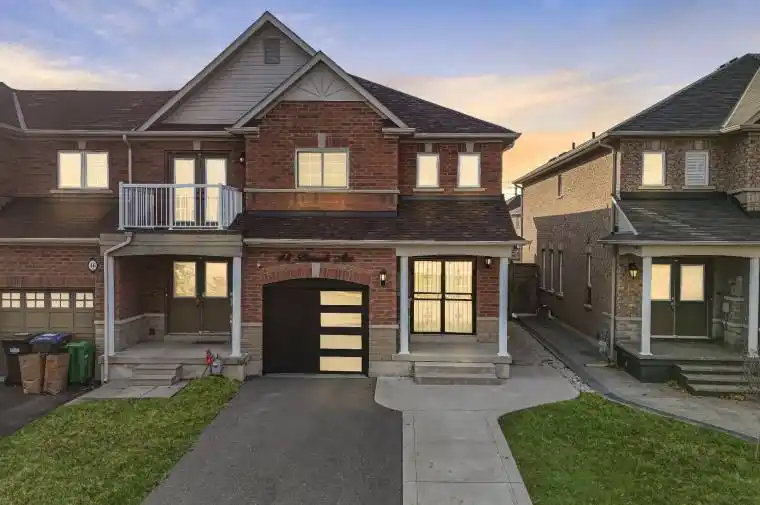 !!Absolute Showstopper!! Don’t Miss This Immaculate END-UNIT Townhome – More Like a Semi-Detached Offering nearly 1,800 Sq ft of Above Grade Living Space. This Turnkey Home comes with Stress Free Living loaded with every Upgrade and Feature you could think of. With Almost $90,000 Invested, Every detail reflects quality and craftsmanship at its finest. The main floor opens into a bright open-concept living with a spacious great room enhanced with smooth ceilings and pot lights. Kitchen comes equipped with High End Smart-Technology S/S Appliances, Quartz counters, Ceramic tile, modern backsplash & water filtration system. Breakfast area walkout to a private concrete backyard perfect for family gatherings and guests entertainment. Completely carpet-free with brand-new Engineered Hardwood flooring on both levels & fresh paint throughout with an upgraded stylish Iron Spindles Staircase. Double-door Primary Bedroom showcases a Walk-In Closet and a Spa-Like Ensuite with glass door standing shower upgraded with premium porcelain floor and wall tile. All bathrooms upgraded with Quartz Counter, Under-Mount sink and Black Faucets. Added convenience and Extra Parking with an extended concrete driveway and paved sidewalk. Additional Highlights Include Central Vacuum, Brand New Garage door, Blackout Blinds, Security Metal Front Gate, Security cameras and more. Area features parks, schools, golf course, public transit. Close proximity to Hwy 410, Trinity Common Mall, Heart Lake Conservation & major plazas. Ideal for first-time buyers, families, Investors, Commuters & nature lovers. Truly a “SEE IT TO BELIEVE IT” Home – FEELS LIKE A BRAND NEW BUILT. Book your showing and experience the living This Home and Neighbourhood has to offer. **Kindly See Upgrade & Feature Sheet Attached In the photos.**