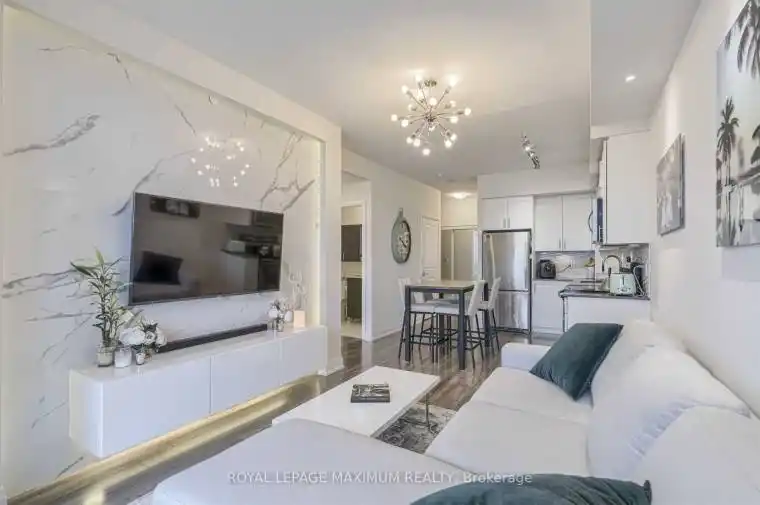 Welcome To A One-Of-A-Kind 1-Bdrm + Den Condo That Redefines Luxury & Is The Most Upgraded 1+Den Unit In The Building! Located On A High Floor W/Unobstructed W-Facing Views, This Unit Is Unlike Any Other. No Detail Has Been Overlooked-From Premium Finishes To Space-Maximizing Upgrades. Highlights You Won’t Find In Other Units This Size: $50,000+ In Custom Millwork: Professionally Designed Built-Ins Throughout, Including A Fully Custom Home Office W/Integrated Storage & Work Desk, A Walk-In Closet In The Bdrm That Maximizes Space, Striking Feature Walls: A Stunning, LED-Backlit Marble Wall W/A Freestanding Tv-A Showpiece That Elevates The Entire Living Space, Premium Flooring: Upgraded Water-Resistant Flooring Throughout The Unit-Stylish, Durable, & Low-Maintenance, Upgraded Kitchen: Modern Cabinetry, S/S App, Quartz Counters, & An Elegant Backsplash, Private Outdoor Oasis: The W-Facing Balcony Has Been Upgraded W/Premium Turf For Added Comfort & Features Unobstructed Sunset Views, & A Clean Water Convenience: A 3-Stage In-Unit Drinking Water Filtration System, No More Lugging Cases Of Water Up Elevators. Comfort & Lifestyle Upgrades: 9-Ft Ceilings Enhance The Open, Airy Feel, Upgraded Lighting Throughout For Lighting Ambiance, Frameless Glass Shower W/Sleek Modern Finishes In The Bath, And More Storage Space Than Any Comparable Unit Thanks To Efficient & Well-Planned Upgrades. Unmatched Amenities: Indoor Saltwater Pool & Sauna For Year-Round Relaxation, Fully Equipped Gym, Media Room, Billiards, Golf Simulator, & Guest Suite, Concierge Service & Party/Board Rooms To Accommodate Gatherings & Work-From-Home Lifestyles. Prime Location: Perfectly Situated On Hwy 7 Near Weston Rd, Steps To Viva Transit, Cineplex, Restaurants, & A Short Ride To The TTC Subway. Neighbouring Hwy 400, 407, & 427, & This Location Is A Commuter’s Dream W/Every Convenience At Your Doorstep. Additional Parking Spot & Private 10×8 Storage Room Possibly Available.