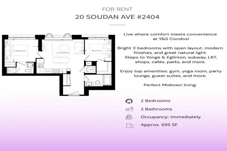 Live in comfort and style at Y&S Condos, just steps from Yonge & Eglinton. This bright-two-bedrooms unit features an open layout, modern finishes, and large windows with great natural light. Enjoy top amenities like a gym, yoga room, party lounge, and guest suites. With shops, restaurants, parks, and transit all nearby, this condo offers the perfect mix of convenience and city living.