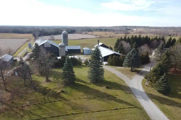 Some properties offer far more than a place to live. This remarkable 98-acre farm, lovingly cared for by the same family for 5 generations, provides an exceptional opportunity for the next generation of farmers or agri-business owners to build upon its legacy. This farm is equipped with a 2001 built Bungalow, income crop & hay fields, outbuildings and barns all set on a paved road just minutes from town and GO Train service. Work where you live in a 2,300 sq ft bungalow equipped with a durable metal roof, and a walk-out basement perfect for a spacious in-law suite or rental income. Outbuildings include broiler barns and a magnificent 3,900+ sq ft bank barn, ready to support agricultural use or be transformed into a one-of-a-kind venue and rental income. Broiler Barn: 48 x288 (13,824 sq ft) equipped with feed system, propane heaters, nipple waterers, and Big Dutchman feeders (all sold as-is) [quota not included]. The Bank Barn is in excellent condition & provides capacity for storing hay or other uses, and a 40 x 80 ft Drive Shed for farming equipment and storage includes a heated, insulated workshop, 16 ft ceilings, concrete floors, and crane. Additional structures include silos, coverall storage, feed tanks, utility shed and detached garage. 40+/- acres ready for planting in 2026 with 25 acres in existing grass for hay. Property offers good income from cash crop tenant farmer and OFA property tax credits. 12 acres forested with mature maple trees potential for syrup production, ATV and hacking trails. This property supports your envision of owning a hobby farm, income investment, poultry production [quota not included] or developing as a ranch / livestock or enjoy a private country retreat. There maybe a possible severance potential in the southeast corner (to be verified with the Town of Erin). GRCA. HST in addition to purchase price. The property is located in the Town of Erin but an Acton address and closer to Georgetown, Guelph, Milton, Rockwood.