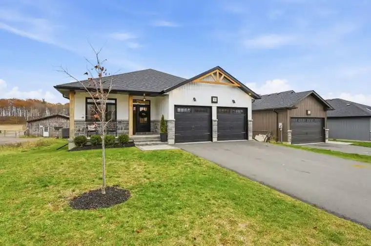 Welcome to this stunning 4 bedroom, 3 bath bungalow nestled in the desirable neighbourhood of Orchard Lane. Builder finished throughout with plenty of upgrades in absolute mint condition! Featuring 9 foot ceilings with transom windows, open concept living with beautiful bright kitchen including accent island with overhang for bar stools, quartz countertops, cabinets to the ceiling with crown moulding, soft close doors and drawers, backsplash, pot drawers, pantry bank. Living room is out of a magazine with modern beams, stone mantle and electric fireplace. Primary suite features private ensuite with quartz counter tops, glass and tile walk-in shower plus walk-in closet. Fully finished lower level boasts large “L” shaped rec room, another bedroom, plus a den, full bath and finished laundry room with room for cabinets, plus plenty of storage. Other popular features include wrought iron railing, laminate and ceramic floors, upgraded light fixtures, pot lights, 3 bedrooms on the main level. Exit through the living room through your 9 foot patio doors to your oversized covered deck, no neighbours on one side and no through traffic. Other exterior features include upgraded stone skirt, interlocking front walkway and landscaping, fully fenced yard, attached double car garage with inside entry, and paved parking. Economical forced air natural gas heat, central air, on demand water heater, HRV for healthy living. Orchard Lane has a park in the subdivision, 5 minutes to the 401, shopping and schools. A short scenic drive takes you to the Millennium Trail or into Prince Edward County where you can enjoy an abundance of wineries/breweries, multiple golf courses, beaches and so much more! Only an hour to the GTA. Check out the virtual walk through for more info!