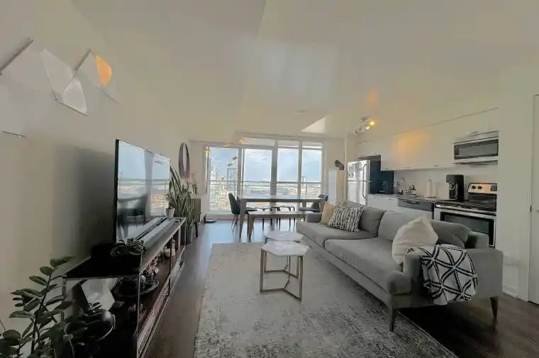 Welcome to this RARELY offered, One-of-a-Kind LOWER PENTHOUSE SUITE 1 + Den | 2 Baths | 1 Parking included | 690 sq ft – featuring a great view of BMO Field, the stadium hosting matches for the 2026 FIFA World Cup! Enjoy your own private balcony Seat overlooking the game, along with breathtaking views of the lake and CN Tower in one stunning panorama! Primary bedroom includes a double closet and 4pc ensuite bathroom, + Full-Size Den that can function as a second bedroom with sliding doors and can work great as an office too. Installed Motorized blinds**, a 2pc Powder room, and in-suite laundry. Located between King and Queen, you are steps from Liberty Village, cafés, restaurants, shops, and essentials. Longo’s, Winners, Shoppers, and McDonald’s are across the street. Exhibition Place, BMO Field, and the GO Station are a 10-minute walk, QEW only 5 min away. Building Luxurious amenities include: a 24-hour concierge, Indoor pool, Hot-Tub, Sauna, Gym, Library, Party room, Theatre, Games Room (ping-pong, billiards, foosball) and guest suites. If you need extra storage Locker can be rented $30-$40/month depends on the size , extra parking spots available in the building for rent if needed as well. Don’t miss out – this is an amazing opportunity to Lease in one of a Prime Downtown locations with unbeatable World-Cass-View! Area and surroundings are a MUST SEE!