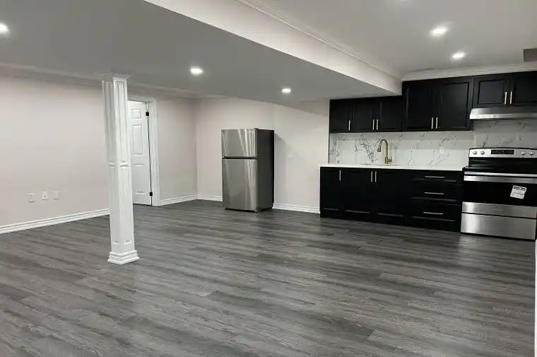 Newly built (Coughlan Homes) luxurious basement apartment featuring a spacious 1-bedroom plus den and 1 bathroom. This bright, open-concept unit offers a modern kitchen with quartz countertops, stylish backsplash, new stainless steel appliances, and pot lights throughout. The primary bedroom includes an extra-large closet and engineered flooring, while the elegant bathroom is finished with a glass-enclosed shower. Conveniently located close to shopping, schools, public transit, and all major amenities-an ideal space for comfortable, contemporary living.
