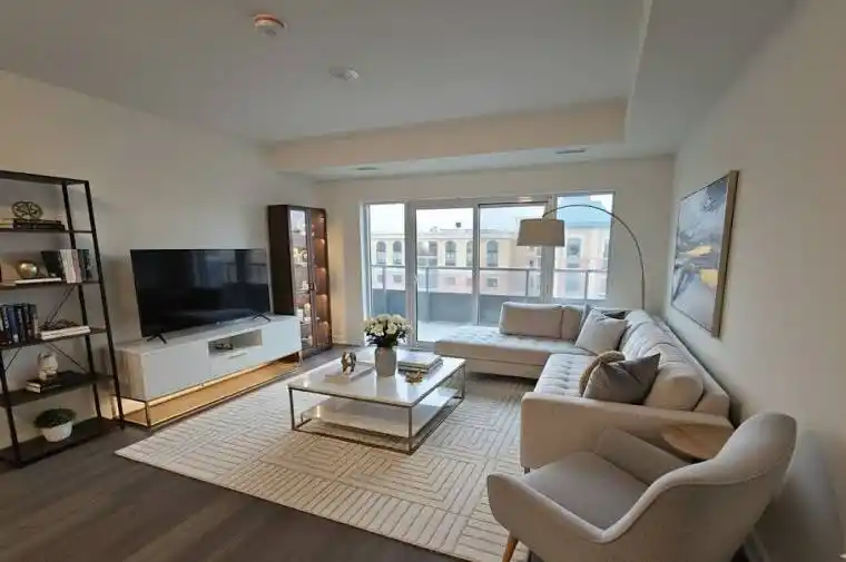 Be the first to live in this immaculate, never-lived-in condo at the prestigious Kingsley Square Condos. This 7th-floorcorner unit offers a highly desirable split-bedroom floor plan, ensuring privacy and comfort. Bathed in natural light with a prime South-West exposure, this home features modern finishes, 9-foot ceilings, and a massive private balcony perfect for sunset views. Spacious 2 Bedroom + Den, 2 Bathroom corner unit with an excellent split-floor plan. Modern open-concept kitchen featuring quartz countertops and brand-new stainless steel appliances. Luxury vinyl flooring throughout (carpet-free) and 9-ft ceilings. Spacious master bedroom has a private ensuite bathroom. Walk out toa large, private South-West facing balcony offering unobstructed views. Included: 1 Underground Parking Spot, 1 Storage Locker, and Ensuite Laundry. Enjoy a luxury lifestyle with state-of-the-art facilities, 24-Hour Concierge and Security. Fully equipped Fitness Center and Yoga Area. Elegant Party Room with a wet bar and Meeting Room. Rooftop Terrace with garden, lounge areas, and BBQ facilities. Pet Wash Station. Guest Suites and ample Visitor Parking. Secure underground bike storage. Prime Newmarket Location. Located in the heart of Newmarket, everything you need is steps away. Walk to Fairy Lake, the Tom Taylor Trail, and local parks. Just around the corner from historic Main Street’s best restaurants and cafes. Steps to Costco, Southlake Regional Health Centre, top-rated schools, and transit options. Minutes to Upper Canada Mall, Yonge Street, and Hwy 404. Photos have been virtually staged.
