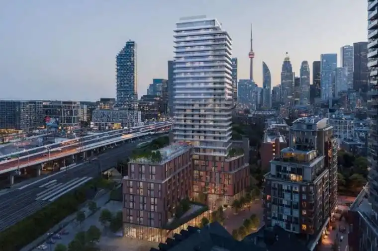 Welcome to The Goode Condos, set in Toronto’s historic and vibrant Distillery District. This never-lived-in 1-bedroom, 1-bathroom suite features an open-concept layout tailored for modern urban living. With approximately 508 sq. ft. of interior space plus a 79 sq. ft. balcony, this well-designed home offers both functionality and style. The bright living and dining area connects seamlessly to a sleek, contemporary kitchen complete with integrated appliances, quartz countertops, and modern cabinetry. The spacious bedroom includes large windows and a sliding door to the balcony, creating an airy and inviting retreat. Residents enjoy access to a full range of upscale amenities, including a fitness centre, rooftop terrace, co-working space, outdoor pool, and party lounge. Perfectly located just steps from the Distillery District Market, Sugar Beach, Lake Ontario, and George Brown College, and only minutes to St. Lawrence Market, Scotiabank Arena, and Union Station. Experience the ideal blend of convenience, culture, and downtown lifestyle at The Goode Condos.
