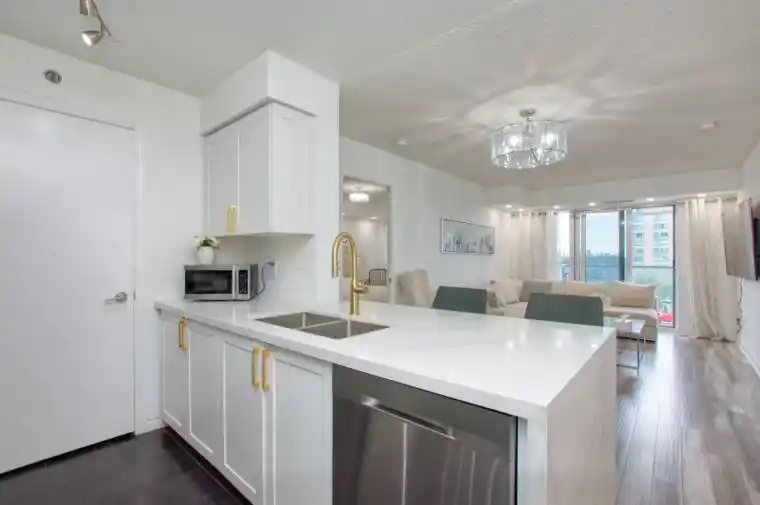 Condo Living At its Best! South-Facing With A CN Tower View. Newly Renovated Kitchen with Beautiful Marble Countertops and new cabinetry. Open Concept unit with NEW Pot lights and light fixtures throughout. Huge Pantry room. Includes Premium Parking Spot & Premium Large Locker. Steps to public transit, library, school, Lawrence plaza, Yorkdale mall, HWY 401 & Allen Rd.