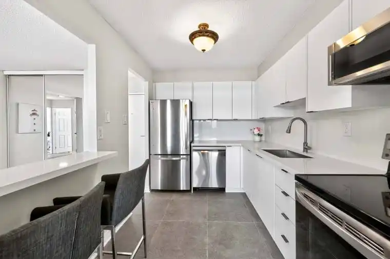 Introducing a newly renovated, southwest-facing, two-bedroom unit that exudes brightness and spaciousness in 832 square feet. This exceptional residence boasts a brand-new kitchen adorned with elegant quartz countertops, state-of-the-art appliances, custom cabinetry, and stylish tile flooring, complemented by an inviting breakfast bar. The open-concept layout has been freshly painted throughout, featuring new tile in the hallway and a meticulously updated bathroom, complete with a modern vanity and lighting fixtures. All utilities are conveniently INCLUDED in the maintenance fees, ensuring a hassle-free living experience.The building itself has undergone a sleek renovation, enhancing both the main lobby and hallways, providing a modern aesthetic. Please note that access to the balcony is currently restricted due to ongoing updates. Situated in a prime location, this unit is in close proximity to parks, restaurants, grocery stores, and the vibrant Erin Mills Town Centre, with easy access to Highway 403.