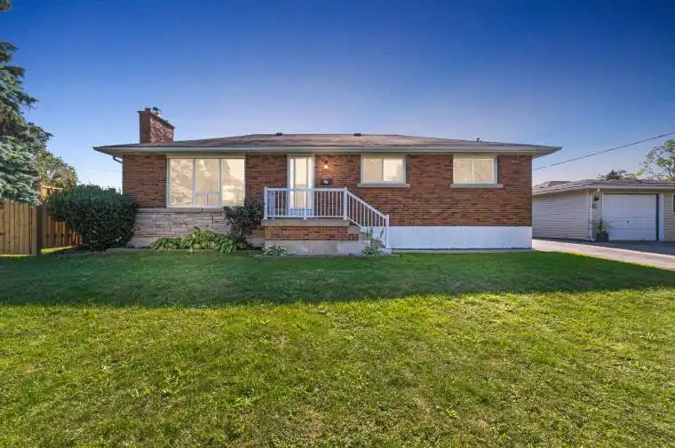 Beautiful all-brick bungalow on a corner lot in Hamilton’s desirable West Mountain neighbourhood! This home offers fantastic curb appeal with a new fence, detached oversized garage (ideal for a workshop or hobby space), and a freshly painted interior with new flooring throughout. Bright and spacious main level featuring a cozy log fireplace, large windows, and updated light fixtures. Three bedrooms on the main floor plus a separate side entrance leading to a fully finished lower level- l in law suite-complete with a full kitchen, living room, bedroom, and bathroom. Basement also features laundry, pot lights throughout, and a luxurious soaker tub. Carpet-free home with plenty of updates and move-in ready charm!