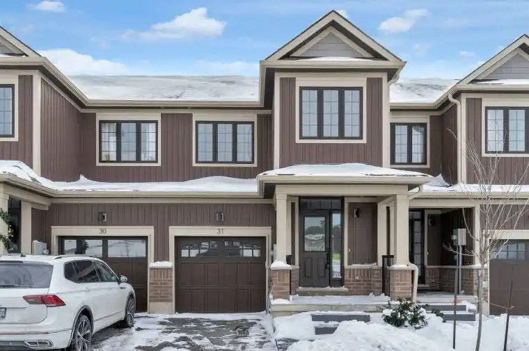 Available For Immediate Occupancy…. Welcome to # 31-690 Broadway. This approximately 1,343 sq. ft. (Excluding Basement) townhouse, featuring a modern layout and design, is located in the beautiful community of Orangeville. The main floor offers 9 ft ceilings and an open-concept design that includes a powder room, family room, eat-in dining area, and a bright, airy kitchen equipped with stainless steel appliances, stylish quartz countertops,Modern Appliances, and a breakfast bar. From this level, step out onto a generously sized deck overlooking the backyard. Upstairs, you’ll find three spacious bedrooms, including a primary suite with its own walk-in closet and a 3-piece ensuite. The unfinished full walkout basement provides endless possibilities and comes with a rough-in for an additional 3-piece washroom-an exceptional bonus. This turnkey property is ready for you to move in and enjoy. Conveniently located at Broadway & Riddell, you’ll have easy access to local amenities, schools, parks, and shopping plazas. Additional highlights include Tarion Warranty, 9 ft ceilings, and luxury vinyl plank flooring throughout the main level. $200.00 per Month POTL fee. Some images have been virtually staged