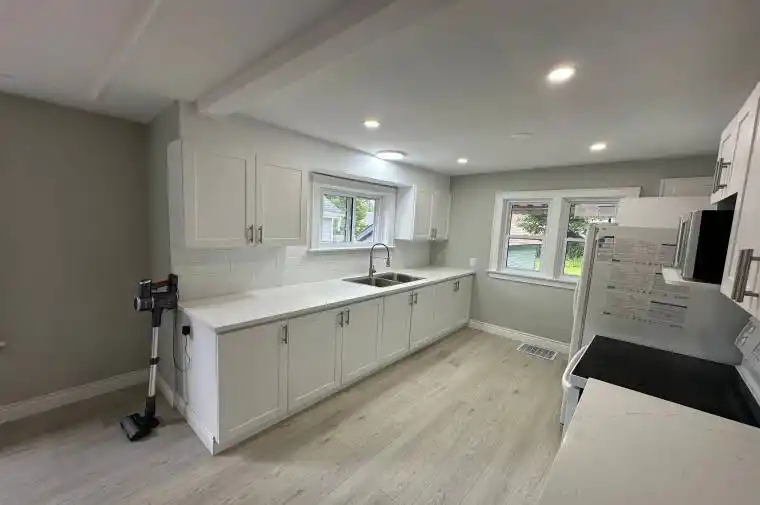 Welcome to this beautifully renovated main-floor unit offering modern, comfortable living in a highly desirable neighborhood. Updated in 2024, the home features new flooring, North Star windows, a newer kitchen with quartz countertops, updated bathroom finishes, and refreshed doors, and trims, throughout creating a bright and inviting space. This main level includes 2 full bedrooms, a spacious living area with a cozy fireplace, a bright upgraded kitchen, and a modern full bathroom. Tenants will also have access to a shared laundry area located on the lower level, offering convenience without compromising privacy. A standout feature is the exceptional parking: 4 driveway spaces included plus 1 garage space, providing rare flexibility for families, working professionals, or anyone needing multiple parking options. Located within walking distance to the Hard Rock Hotel, Tim Hortons, the Western Fair District, parks, schools, and public transit, this unit offers both comfort and convenience. Tenants are responsible for their own utilities. Perfect for responsible tenants seeking a clean, updated home in a great location.