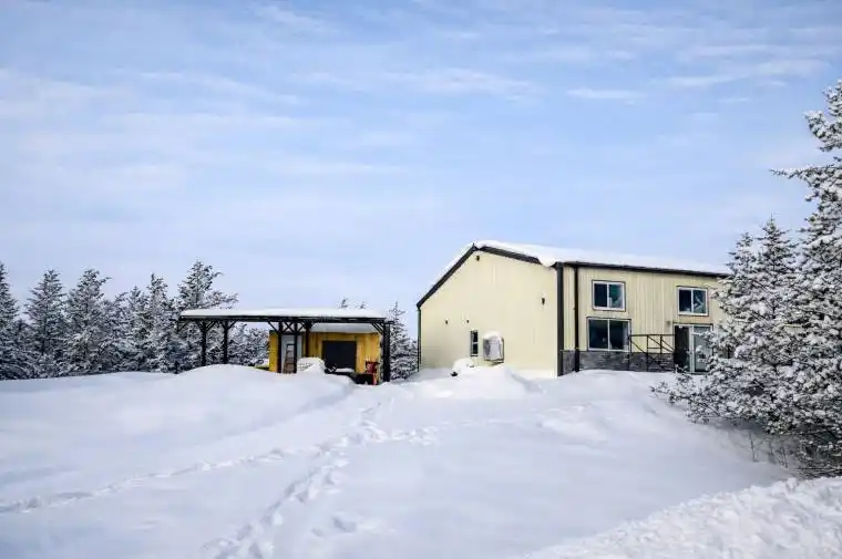 Set on 1.23 private acres in Trent Hills, this custom-built steel barndominium delivers a rare combination of structural strength, energy efficiency, and modern rural living. Purposefully designed for durability and long-term performance, the home integrates high-efficiency building systems with clean architectural lines and expansive interior space-offering a lifestyle centered on independence, comfort, and low operating costs. The 2,000 sq. ft. layout features a dramatic open-concept great room with a 17′ peak ceiling, seamlessly connecting the kitchen, dining, and living areas. Large windows and sliding doors frame views of the surrounding landscape and bring natural light into the main living space. Three bedrooms, two full bathrooms, and a dedicated office provide flexibility for families, remote professionals, or guests. The primary suite includes a walk-in closet and private ensuite, while additional storage has been thoughtfully incorporated throughout. Built on an insulated slab foundation with in-floor heating, the home is spray foam insulated for year-round efficiency and comfort. Exterior finishes include durable pre-finished steel siding with contrasting trim and stone accents, reinforcing the property’s low-maintenance design. Energy independence is a defining feature. A 12.9 kW solar array, supported by dual 14.3 kWh batteries and an 18 kW inverter, provides substantial on-site power generation, with infrastructure in place for future expansion. Rough-ins for propane appliances, heat pumps, ductless systems, and water catchment further enhance long-term adaptability. An engineered solar-ready carport and equipment shed complement the home’s forward-thinking design. For buyers seeking a modern, energy-conscious residence with rural privacy and infrastructure already in place, this property represents a compelling and highly functional opportunity.