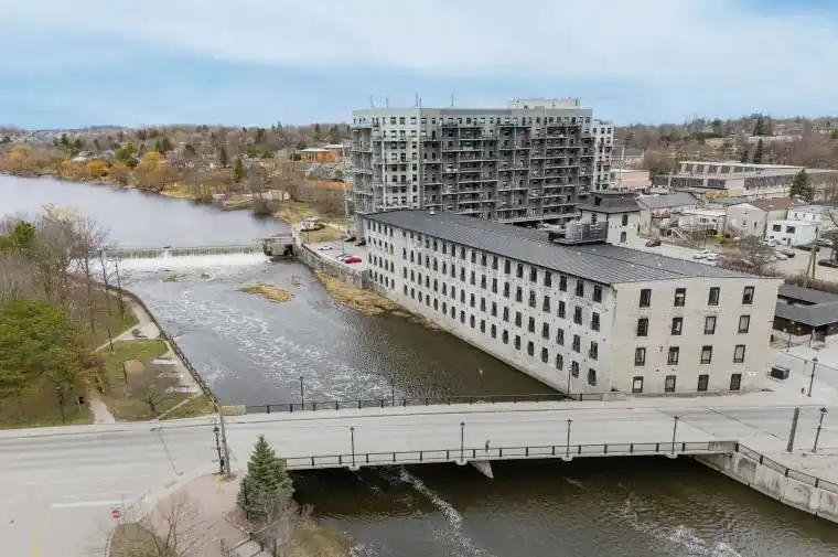 Experience the perfect blend of industrial charm and modern comfort at Riverbank Lofts! This stunning one-bedroom, one-bathroom condo is set in a beautifully repurposed former American Standard factory, transformed into contemporary residences in 2020. Nestled alongside the scenic Speed River and just steps from downtown Hespeler, you’ll enjoy easy access to local shops, trails, and vibrant community amenities. Step inside to soaring 12-foot ceilings, expansive windows that flood the space with natural light, and striking exposed stone walls and reclaimed wood beams that add unique character throughout. The stylish kitchen features quartz countertops, stainless steel appliances, and a spacious island-perfect for entertaining or casual dining. Open the patio doors to your own private balcony with captivating views of downtown. The bedroom offers a generous walk-in closet, providing ample storage. Additional conveniences include in-suite laundry, one dedicated parking space, and access to premium building amenities: a fitness centre, bike storage room, dog washing station, and a private lounge for hosting guests. With quick access to Highway 401, shopping, and public transit, Riverbank Lofts offers an unparalleled lifestyle in a truly distinctive setting. Don’t miss your chance to own a piece of Hespeler’s history-book your private showing today!