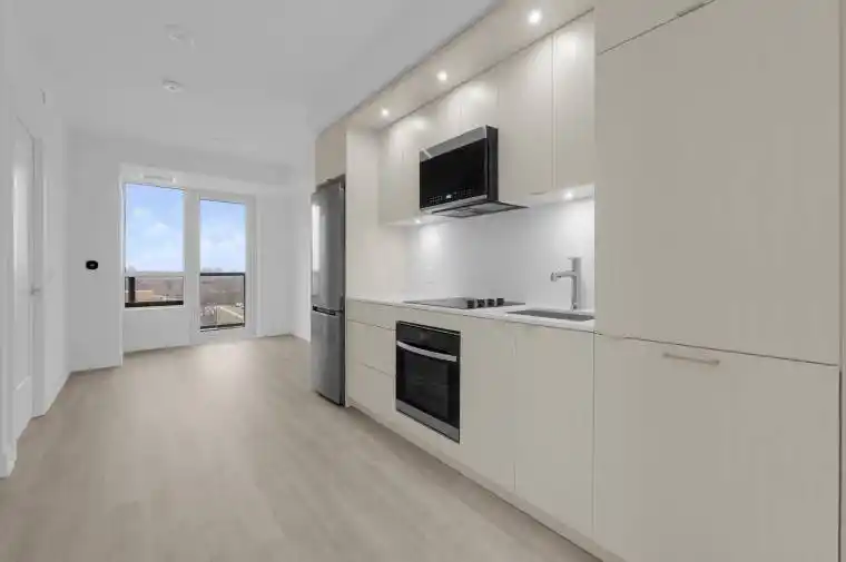 Welcome to Westerly 2 by Tridel, a modern condominium community offering thoughtfully designed living in the heart of Islington-City Centre West. This bright and efficiently designed 1-bedroom, 1-bathroom suite offers approximately 493 sq. ft. of well-planned interior space with clean contemporary finishes and a functional open-concept layout ideal for modern urban living. The contemporary kitchen features sleek flat-panel cabinetry, quartz countertops, integrated stainless steel appliances, and under-cabinet lighting, flowing seamlessly into the combined living and dining area. Wide-plank flooring and large windows enhance the space with an abundance of natural light and a clean, modern aesthetic. The bedroom includes a full-height window and generous closet space, while the 4-piece bathroom showcases modern tilework, a deep soaker tub, and a sleek vanity. In-suite laundry is conveniently tucked away, and the suite includes both one parking space and one locker for added practicality and storage. Residents of Westerly 2 enjoy access to premium amenities including a fitness centre, yoga studio, co-working lounge, party room, kids’ zone, outdoor terrace, and 24-hour concierge. Ideally located just steps to Islington Subway Station, Bloor Street shops and cafés, parks, and everyday conveniences, this suite offers a comfortable blend of modern living and exceptional connectivity in a desirable Etobicoke neighbourhood.