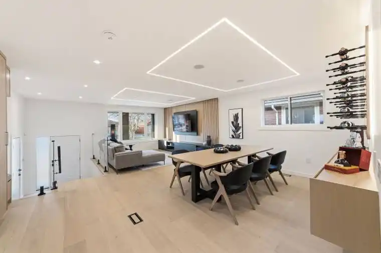 Not your typical bungalow – Rare modern transformation bungalow! Significant investment, hundreds of thousands spent into all updates & finishes, luxurious, elegant open-concept living spaces. Premium custom upgrades throughout. New plumbing, electrical, drywall, roof, windows, doors, flooring, kitchens, baths, and much more. The flexible layout, just over 2400 SQ FT total, allows conversion into two potential independent suites, each with separate entrances, private laundry, and its own alarm security system – ideal for extended family or generating additional income. Designer kitchens showcase sleek cabinetry, high-quality quartz counters, matching backsplash, and s/s appliances. Spa-inspired bathrooms feature smart heated toilets, frameless glass showers, and generous storage. Every detail stands out: solid-core doors, recessed linear LEDs, pot lighting, high-end millwork, spacious bedroom custom wardrobes with built-in drawer system, engineered hardwood, and bright above-grade lower-level windows. Even the garage has been transformed with new drywall, ceiling, tiled flooring, electric heating, hexagon LED lighting, a new door, and side access. Outside, enjoy beautiful curb appeal, a large backyard, lower walk-up access, new fence, extra-wide driveway, extra parking spaces, and exterior cameras. Steps to Eastgate Square Mall and minutes to Starsky Fine Foods, GO Station, QEW, and more. Must see in person. Watch 3D Virtual Tour & book a visit!