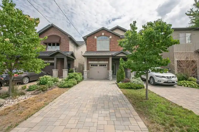 Gorgeous modern Semi Detached home located within walking distance of Broadview Public School and Dovercourt Rec. Center, Westboro shops and transit way. Quiet family oriented neighbourhood with private parking and yard. Main floor welcomes you with a spacious foyer and 2pc bath. Just a few steps up to the Open concept design living area with 9′ ceilings, gorgeous strip oak hardwood floors (which run throughout the main and 2nd floors) and stunning stacked stone fireplace. Spacious kitchen with granite counters, rich rosewood cabinets and modern appliances. Double doors off of the living area lead to a large cedar deck overlooking a private fenced yard. The 2nd level features a stunning primary bedroom with a huge picture window. There is also a luxurious 5pc bath en suite bath with a soaker tub, glass walk in shower, double sinks and granite counters. Curved walls lead to the 2nd and 3rd bedrooms with double closets, and large bright windows. The laundry closet is also conveniently located on the 2nd floor, close to the bedrooms. Lower level is bright and cheery! Relax in the spacious family room with pot lighting and cozy stacked stone fireplace. Beautiful private back yard with entertainment sized cedar deck and fenced lot. A durable Permacon interlocking paver driveway and lovely landscaping along with the stone facade, make for very attractive curb appeal and easy maintenance.