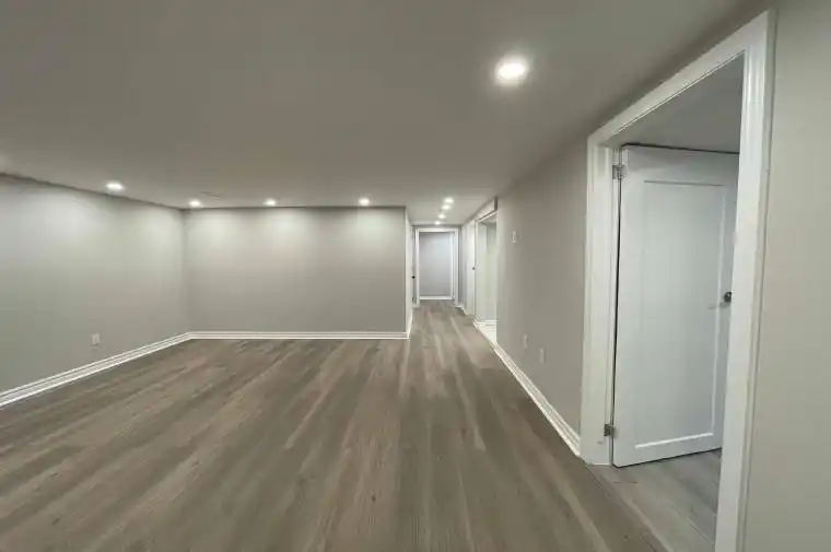 Very spacious and bright newly renovated basement apartment featuring 2 bedrooms, 1 bathroom, and a modern kitchen with brand-new cabinets, quartz countertop, dishwasher, microwave. This unit offers 3 brand-new sunshine-side windows, brand-new laundry, private entrance through the garage, and is carpet-free with new vinyl flooring and pot lights throughout. The bathroom has been upgraded with a new glass shower set, base, and plumbing. Comfort is ensured with brand-new central A/C, furnace, and an owned tankless water heater. Tenants pay 40% of water, hydro, gas, and internet. Two parking spots on the left side of the driveway are included. Conveniently located near schools, highways, and all amenities. No backyard access. Ready to move in!