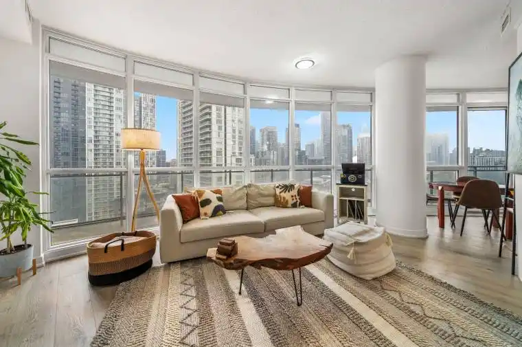 Welcome to unit 2008 at 38 Dan Leckie Way, a one-bedroom residence in The Panorama Condos that offers a thoughtful layout and expansive outdoor space. Available for lease starting January 15, 2026. The suite itself is efficiently planned, with one bedroom and a cleverly designed four-piece bathroom that connects seamlessly to both the foyer and the bedroom. The bathroom layout includes a separate water closet with its own sink and toilet, while the main bathing area features a sink and shower. It’s a practical setup that allows the space to function smoothly for daily life, whether you’re hosting a guest or just moving through your morning routine. The living space opens naturally onto one of the unit’s standout features: a huge wrap around balcony with North West exposure that stretches toward Eastern views. From here, you can take in CN Tower views and Lake Ontario in the distance. Inside, the unit includes a stacked washer dryer. The unit can be leased furnished or unfurnished, offering flexibility depending on your plans. There is also an option to purchase the existing furniture directly from the landlord, subject to negotiation. Monthly rent includes water and heating. The tenant is responsible for hydro and wifi. The building sits less than a ten minute walk to the Billy Bishop Airport Ferry Terminal and a fifteen minute walk takes you to the Rogers Centre. Nearby, there are everyday essentials like Shoppers Drug Mart, the LCBO, and Loblaws. The surrounding area offers plenty of greenspace, with nearby parks and easy access to the waterfront trail.