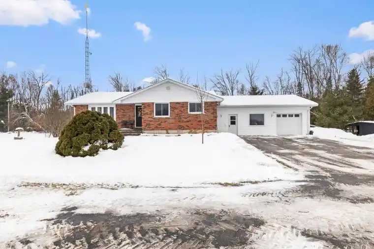 Set on just over 2 acres and minutes from Balsam Lake, this 3-bedroom, 1-bath bungalow offers space, thoughtful updates, and authentic country charm. The modern eat-in kitchen features crown moldings and stylish finishes, while laminate flooring throughout provides warmth and low-maintenance living. The inviting living room suits everyday life, and the finished lower level delivers a spacious rec room that functions as a true man cave, complete with a fish-tank bar setup and a fully stocked wood stove for winter, creating a warm and comfortable space for relaxing or entertaining year-round. Practical features include a dedicated laundry area, utility room, attached single-car garage, and two sheds, one powered, ideal for storage or workshop use. Recent updates include windows, doors, and a 200-amp breaker panel. Enjoy privacy on a tree-lined lot just minutes from a boat launch, making this property well suited for outdoor enthusiasts, gardeners, or those looking to grow their own crops. With highway exposure and potential for a secondary entrance from the adjoining roadway, subject to COKL approval, this property offers both convenience and opportunity. Country living with room to breathe-come make it yours.