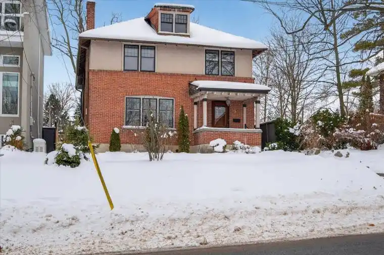 Welcome to this beautiful inviting character home, perfectly situated on a quiet, tree-lined street in the highly sought-after Teachers College neighbourhood of Peterborough. This prime location offers the rare combination of peaceful residential living with the convenience of being able to walk, bus or drive just minutes to downtown amenities. This spacious four-bedroom, three-bathroom home, plus a main floor powder room, blends timeless charm with thoughtful modern updates. The large living room features a wood-burning fireplace, creating a warm welcoming space for relaxing evenings. From here, the home flows seamlessly into an open-concept kitchen, dining and living area, ideal for entertaining family and friends. A standout feature is the 2-storey addition completed in 2015, designed to enhance both comfort and connection to the outdoors. The expansive family room boasts coffered ceilings, built-in cabinetry and shelving, large windows and two walk-out doors leading to a generous patio deck with wide views of the rear property. The home also offers wheel-chair accessibility through the rear entrance and deck adding versatility and thoughtful design. Hardwood flooring extends throughout the home.The primary bedroom retreat offers a spacious walk-in closet and four-piece ensuite bathroom. Enjoy the exceptional lifestyle with the Rotary Trail, Parks, biking paths, and river just steps away. A short walk brings you to downtown Peterborough’s restaurants, shopping, hockey and sports facilities.