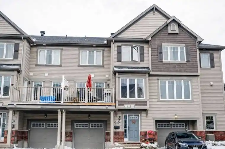 Beautifully maintained townhome located in the desirable Half Moon Bay community. Ideally situated close to shopping, public transit, Highway 416, and everyday amenities. The open-concept living and dining area is anchored by a spacious kitchen featuring ample cabinetry, and a generous breakfast bar-perfect for everyday living and entertaining. A conveniently located powder room completes this level. Gleaming hardwood flooring enhances the second level throughout. Step out from the dining area onto a large deck, ideal for BBQs and outdoor gatherings. The third level offers a well-appointed primary bedroom with a large walk-in closet and cheater access to the main bathroom. The second bedroom provides flexible space for guests, family, or additional work-from-home needs, while the loft area serves as an ideal office nook. Additional highlights include main-floor laundry, a welcoming foyer with direct garage access, and parking for up to three vehicles. A fantastic opportunity-don’t miss out!
