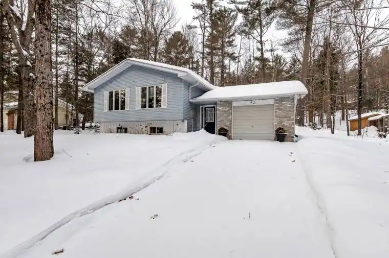 Tucked on a quiet dead-end street in the Bridgedale community of Port Sydney, with only a handful of homes, this property offers a rare blend of privacy and convenience. The main floor features an inviting open-concept living, dining and kitchen area designed for connection and everyday ease. A spacious island anchors the kitchen, providing a natural spot for gathering, preparing meals or entertaining. Three bedrooms complete this level, including a comfortable primary suite with its own three-piece ensuite, while two additional bedrooms share a full four-piece bath. Inside entry from the single-car garage adds everyday practicality. Out the back door, a natural-gas BBQ hookup and generous deck create the perfect setting for outdoor meals, quiet mornings or lively summer evenings.The lower level expands the living space with a recreation room ideal for games, hobbies or cozy movie nights. A large storage area accommodates laundry facilities, utilities and a wood stove. Comfort is ensured year-round with a natural gas forced-air furnace, central air, drilled well with UV and iron filtration, and a septic system, while curbside garbage collection simplifies daily life.This location offers a lifestyle of balance, serene yet close to everything. Just minutes away is the acclaimed Port Sydney Beach on Mary Lake, as well as a community centre, grocery store, LCBO and gas station. Easy highway access makes commuting to Huntsville or Bracebridge a breeze. More than just a house, this is a welcoming home ready to be the backdrop for its next chapter.