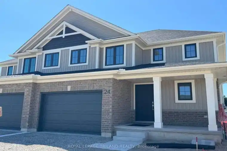 Welcome to 24 Harrow Lane! This 1,520 sq. ft. semi-detached two-storey home with a 1.5-car garage is perfectly crafted for comfortable family living. The Elmwood model greets you with a spacious front foyer, a convenient main-floor powder room, and an open-concept layout that seamlessly connects the kitchen, dining area, and great room, ideal for both everyday living and entertaining. The main level is finished with luxury vinyl plank flooring, while the kitchen shines with granite countertops and a modern tiled backsplash. Upstairs, you’ll find three generously sized, carpeted bedrooms and a sleek 4-piece main bath. The primary bedroom features a walk-in closet and its own private 3-piece ensuite.The unfinished basement offers plenty of future potential, with a rough-in for a 4-piece bathroom, laundry area, and enough space to add a rec room or even a fourth bedroom. Located in southeast St. Thomas within the desirable Mitchell Hepburn School District, this home is just minutes from parks, walking trails, and schools. Why choose Doug Tarry? Not only are all their homes Energy Star Certified and Net Zero Ready but Doug Tarry is making it easier to own a home. Reach out for more information on the current Doug Tarry Home Buyer Promo! Don’t hesitate – Make 24 Harrow Lane your new home today!