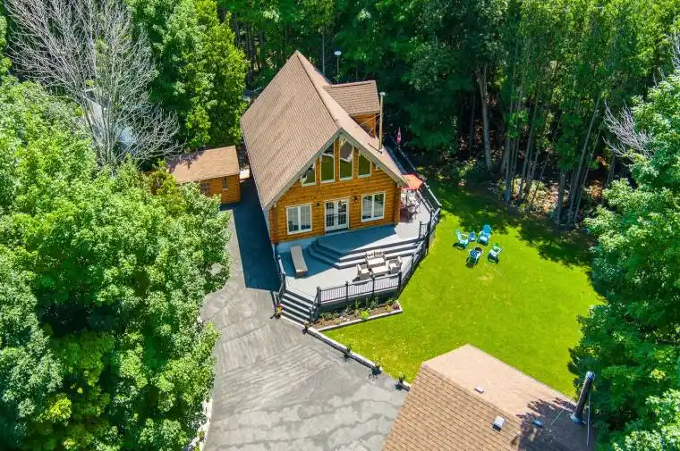 Discover the magic of Sauble Beach living in every season. This turn-key 4-bedroom, 3-bath retreat offers over 2,100 sq ft of finished living space, Fibre Optic internet, and Natural Gas, making it ideal for full-time living, weekend escapes, or work-from-home comfort year-round. Set on over half an acre, the property provides rare privacy and space to unwind long after summer crowds have gone. Arrive home via the circular paved driveway to a peaceful, tree-lined setting with manicured lawns and perennial gardens. Enjoy crisp fall mornings and snowy winter evenings on approximately 800 sq ft of wraparound, low-maintenance composite decking, or soak year-round in the sunken hot tub after beach walks, snowshoeing, or trail adventures. Inside, the open-concept main floor is warm and inviting, filled with natural light from a wall of windows. The updated kitchen features white cabinetry, black granite countertops, stainless steel appliances, and high-end fixtures, flowing seamlessly into comfortable living and dining spaces. The main level also offers two spacious bedrooms, laundry, a 4-piece bath, and solid maple flooring throughout.The upper-level primary suite provides a quiet escape with generous closet space, a 4-piece ensuite, and a bright office/reading nook-perfect for remote work. The fully finished lower level is ideal for winter nights and rainy days, featuring a large games room, guest bedroom, office/den, and 2-piece bath.Outdoor storage and hobby space abound with a detached insulated & heated 2-car shop/garage, a 10′ x 16′ garden shed, and an additional 10′ x 32′ fully insulated outbuilding-ideal for storage, a workshop, or future bunkie. A rare opportunity to enjoy the calm, beauty, and comfort of Sauble Beach-365 days a year.