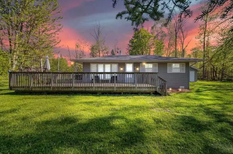 This well-maintained 3-bedroom, 1-bath winterized cottage offers the potential to be a cozy full-time residence. Set on a spacious corner lot, it boasts an expansive wrap-around deck facing south and north, providing morning sun and afternoon shade. Inside, you’ll find all bedrooms are generously sized, with two featuring closets. Recent updates include new windows, doors, and siding (2006), a 200 amp breaker panel (2008), a new deck (2009), an updated bathroom (2018), and refreshed flooring and kitchen (2021). Conveniently located just a few kilometers from the heart of Sauble Beach, this property blends modern comforts with a charming, outdoor lifestyle. REMARKS MUST RELATE DIRECTLY TO PROPERTY200 amp. breakers. Roof deck 2009. Windows/doors/siding done in 2006. Flooring 2021, Bathroom 2018, Kitchen 2021. Septic is original with bed runs replaced. Municipal inspection approval report available from 2015.