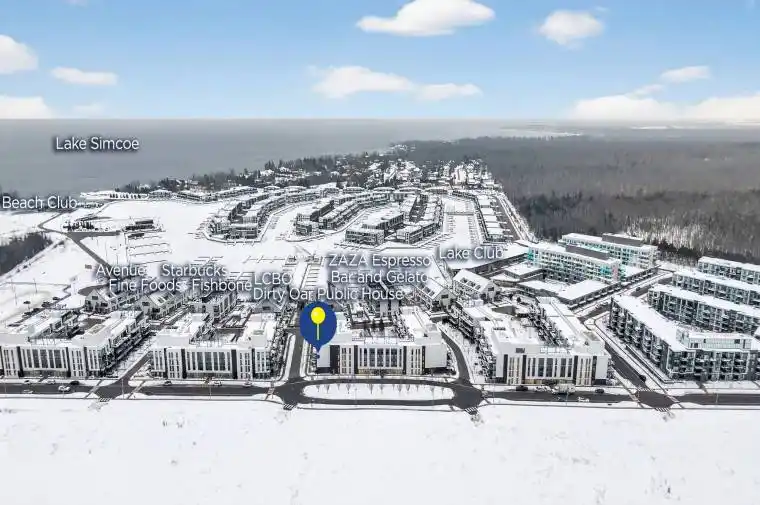 Welcome To Friday Harbour! A Year-Round Resort Style, Maintenance Free Living With Top Class Amenities For All To Enjoy! Spacious 2 Bedroom, 2 Bathroom, 735 SqFt Quiet Corner Unit With Views Of The Boardwalk From Your Balcony! Welcoming Foyer Leads To Open Concept Layout With Premium Upgrades Completed Throughout. Spacious Kitchen Features Stainless Steel Appliances, Quartz Counters, Modern Backsplash, & Centre Island Overlooking The Living Room. Living Room Has Walk-Out To Large Balcony & Is Perfect For Hosting! Primary Bedroom With Floor To Ceiling Windows, Built-In Shelving, Large Closet, & 4 Piece Ensuite. Plus Secondary Bedroom With Huge Windows & Large Closet! Additional 3 Piece Bathroom With Glass Shower. Convenient In-Suite Laundry. 1 Underground Parking Space & 1 Storage Locker Included. Resort Style Amenities Include: Outdoor Pool, Gym, Private Dining & Party Rooms, Golf Course, Nature Trails With Over 200 Acres To Explore, & Marina! Plus Owners Private Lake Club With Beach Access, Tennis & Basketball Courts. Everything You Need Is Right At Your Finger Tips With Restaurants, Grocery Store, Starbucks, LCBO, Activities, Hair Salon, Night Club, & Clothing Boutique Right Along The Board Walk! The Perfect Spot To Live Year Round Or A Great Vacation Spot During The Summer With Access To Lake Simcoe! Monthly Maintenance Fee Includes Common Elements, Building Insurance / Maintenance, Landscaping & Snow Removal. Additional Fees Include: Lake Club Fee $199.09 + HST Per Month, Annual Resort Fee $1,352.40, Buyer Acknowledges 2% Resort Entry Fee When Buying. You’ll Never Want To Leave!