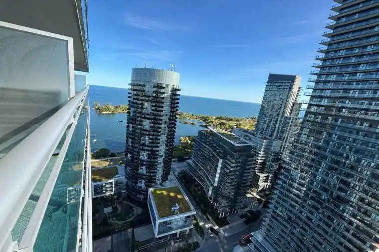 Waterfront Upper Floor Condo at Nautilus by Monarch | 2 Bed, 2 Bath | 2 Balconies | Lake & Sunset Views | 1 Parking spot | 1 Locker room | 3 Walkouts | Den suitable as office or extra room | 3 Minutes walking distance to the Lake | Del Property Management | Prime Humber Bay Shores Location | Approx. 904 Sq Ft Interior + 200+ Sq Ft Outdoor Living. Experience luxury waterfront living in South Etobicoke’s sought-after Nautilus at Waterview by Monarch. This beautifully designed 2-bedroom, 2-bathroom upper-floor suite features floor-to-ceiling windows, 9-ft ceilings, and southwest views of Lake Ontario and breathtaking sunsets. Enjoy over 200 sq ft of outdoor space across two private balconies with three walkouts from the living room and both bedrooms perfect for entertaining or relaxing by the water. Building Amenities:24-hour concierge & security, Indoor pool, gym & sauna, Rooftop terrace with lake views, Game room, Party room, guest suites & visitor parking, more Location Perks: * Clear Lake view, Steps to lakefront trails, parks, marinas* Walk to local Rabba supermarket, shops, cafes, restaurants* Easy access to TTC, Gardiner Expressway and upcoming GO Station* Minutes to Downtown Toronto, High Park & Sherway Gardens *For Additional Property Details Click The Brochure Icon Below*