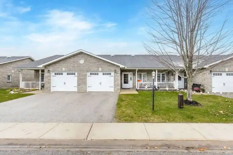 This true ranch-style bungalow is one of the very few single-level, fully wheelchair-accessible homes in town, complete with an attached garage and inside entry, making it ideal for aging in place, retirement living, or anyone seeking barrier-free design. Located in a prime central location, the home is just minutes from shopping, medical offices, restaurants, and the beach, offering unmatched walkability and everyday convenience.Inside, the home offers 1,200+ sq ft of thoughtfully designed living space with vaulted ceilings that enhance natural light and openness. The spacious eat-in kitchen features a large island with additional pot storage, perfect for entertaining, meal prep, or family gatherings. The layout includes 2 bedrooms, 2 full bathrooms, and main-floor laundry, providing functional, efficient living with no wasted space. Upgraded flooring throughout with no carpet ensures low maintenance and accessibility.The primary bedroom includes a large wardrobe, walk-in closet, and additional storage closet, while the private ensuite offers a walk-in shower with built-in seat, designed with comfort and mobility in mind. Garden doors open to a large concrete patio with gas BBQ hookup, backing onto a private treed setting. A covered front porch adds another outdoor space to enjoy morning coffee or relax year-round.Situated within a desirable 55+ adult lifestyle community, residents enjoy walking trails, an outdoor pool, clubhouse, and an active social calendar. This is a rare opportunity to own a fully accessible, one-level home in a high-demand location, perfect for low-maintenance living, downsizing without compromise, or a relaxed, active lifestyle near the beach. Community center close by with indoor walking track