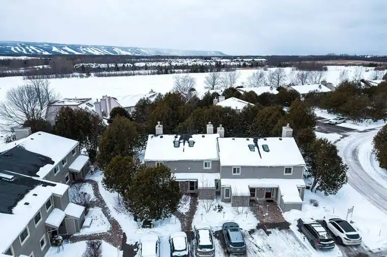 The perfect home or getaway in Collingwood – Ontario’s Four Season playground. This remarkable condo townhome is located in Living Stone Community (formerly Cranberry) – close to waterfront, trails, golf, beaches and ski hills. Enjoy a reverse floor plan with a bright and open upper main floor – featuring vaulted ceilings with a sky light, a cozy wood burning fireplace, and a large private balcony backing onto mature trees. The ground floor offers two sizeable bedrooms and two updated four-piece bathrooms with a recently installed walkout to your private deck from the primary bedroom. Ample storage is available under the stairs and in your exterior personal shed. Control your temperature efficiently with 2 recently installed ductless cooling and heat pump systems – one on each level, plus baseboard heaters for backup. A rare opportunity for a lovingly maintained home with reasonable condo fees, a well managed community, visitor parking, and beautiful, mature trees surrounding the property. Available partially furnished. Your Collingwood Lifestyle awaits!