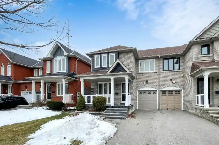 Welcome to this beautifully maintained 1833 sq. ft. Semi-detached home linked by a partially shared wall, offering added privacy and a detached-like feel. Offering 3 spacious bedrooms and 2.5 bathrooms, this designer-inspired residence features no carpet throughout, creating a clean, modern, and low-maintenance living environment.The main level is ideal for both everyday living and entertaining, cozy family room with gas fireplace overlooking the backyard and living/dinning room for your formal gatherings. Step outside to enjoy a private backyard with open views of trails and lush greenery under the hydro corridor – no rear neighbours, just nature and birdsong to start your day. Kitchen with breakfast bar and area opening to serene backyard & Pantry closet.Additional highlights include second-floor laundry, direct access to the garage, and a charming front porch, perfect for relaxing summer evenings. The generous primary bedroom offers a Juliet balcony, a cozy reading nook, and a spa-like 4-piece ensuite. The second bedroom features a walk-in closet, providing excellent storage.Located on a very low-traffic street, this home is within an easy walk to the Whites & Finch Durham Transit stop and 5 min drive to Pickering GO making commuting a breeze. The roof was replaced in 2015, Gas Furance 2026 and the unfinished basement includes a rough-in for a future bathroom, offering excellent potential for customization.A rare opportunity to enjoy space, privacy, and nature-without compromising on convenience. This home truly checks all the boxes.