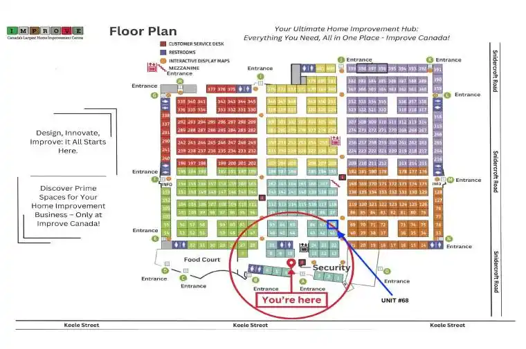 An excellent opportunity to own a commercial unit in Improve Canada, the country’s largest home improvement centre and a destination for renovation, design, and construction professionals. Surrounded by hundreds of curated showrooms, this high-traffic environment attracts a steady flow of homeowners, designers, and contractors actively seeking products and services. The unit is ideal for a modern storefront or branded showroom.Located in a fully indoor, climate-controlled facility with ample on-site parking and convenient access to major highways, Improve Canada offers a business-focused setting designed for visibility and growth across the GTA.