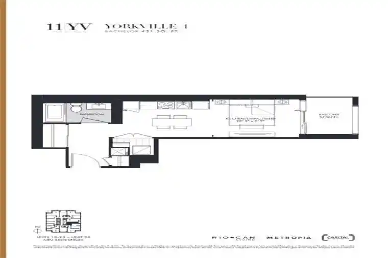421sqft + Balcony bachelor/studio with east exposure. 11 Yorkville by RioCan, Metropia & Capital Developments – Inspired by the towers of Manhattan, 11YV rises 65 storeys above Yorkville with meticulously sculpted, elegantly proportioned architecture and approximately 600 residences whose inhabitants have a clear appreciation for beauty, luxury, quality, service and the finest comforts. Whether enjoying the buildings world-class amenities, walking through the contemporary ground level garden, or patronizing the 24,000 square feet of street front retail space, 11YV residents are at the centre of an urban fairy tale. Yorkville is kilometre zero for the well-cultured and well-heeled. A place where the world’s savviest consumers congregate to satisfy their appetites for luxury retail and gourmet pursuits. It’s an ever-evolving area that never fails to dazzle and intrigue, and a AAA-opportunity for only the most exclusive brands. 11YV offers world class amenities that immerse you with the look and feel of luxury and comfort elevating you too new heights. With a spectacular double-height lobby, infinity edged indoor/outdoor pool, multifunctional space, an intimate piano lounge, a dramatic wine dining room, and an Instagram-worthy, velvet-covered signature Bordeaux lounge residents are sure to feel elevated at all times. On top of all that they also offer a state of the art fitness centre, outdoor lounge with BBQ’s, a zen garden, and a business centre including a boardroom bringing together the work hard/ play hard lifestyle.