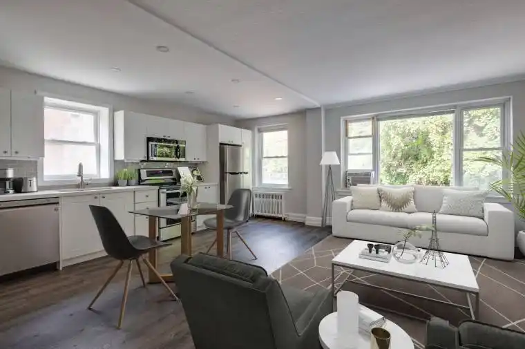 Spacious open-concept living area featuring a large window that fills the space with natural light. The renovated kitchen is equipped with stainless steel appliances, including a dishwasher, a ceramic backsplash, and ample storage. The unit offers a modern bathroom and a generously sized bedroom with a closet. Ideally located just steps from two TTC stops, providing a quick five-minute ride to Royal York Station. Enjoy walking distance to Humbertown Plaza and the Humber Ravine, with excellent schools and parks nearby. On-site laundry operated by Sparkle Solutions features a convenient reloadable card system. Green P street parking is available at exceptional rates, $1/12 hours. Photos have been virtually staged.