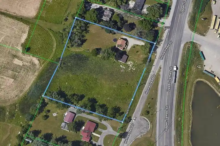 Prime Upper James location with high traffic…a great opportunity for developers! Parcel of land approximately 1.95 AC, 300′ frontage and 280′ deep, close to John C Munro International Airport, hotels, golf courses and Amazon Warehouse. Zoning permits many uses for future development. There is a 1.5 story home with city water and sewers and a double detached garage. Value is in land development, buyer to use due diligence to verify intended use. This lot backs on to a proposed business development including warehouses, offices, commercial ground floor uses, designed as an airport-related industrial-commercial subdivision. Appointments are required to visit the property. Don’t miss this amazing opportunity!