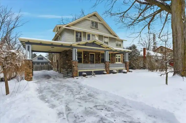 Step into this charming 1920s two storey home with loft where character, space & location come together beautifully. This 4 bed, 1 bath property is truly one of a kind. From the moment you arrive, the inviting covered porch welcomes you into a spacious foyer that sets the tone for the home’s historic elegance. Inside, you’ll find hardwood floors, wood-beam ceilings & classic cast-iron radiators, blending timeless charm with warmth & comfort. The kitchen offers ample storage, upgraded appliances & easy access to a spacious back deck, perfect for entertaining family & friends. A formal dining room with oversized windows flows seamlessly into the living room with a cozy fireplace, perfect for cold winter nights. French doors lead to a bright sunroom with wraparound windows & a second fireplace, ideal spot to relax or enjoy your morning coffee. The main floor also features a private office with custom built-ins, perfect for working from home. Upstairs, you’ll find 4 spacious bedrooms. A primary suite with a large closet & private sitting area. Two additional bedrooms offer large closet space & natural light, while the fourth boasts its own private deck overlooking the backyard. A 4-piece bath completes this level. The charm continues on the third floor, where a converted attic provides extra living space-a perfect teen hangout, studio, or hobby room. The possibilities are endless. Outside, spend your evenings on the spacious deck or relax in the fully fenced backyard gathered around the fire pit. With ample space for kids & pets, it’s the perfect setting for memorable family nights. One of the home’s most distinctive features is the carriage house/garage with vaulted ceilings & an original turntable floor, offering a rare glimpse into the home’s historic past, plus the added benefit of a single carport.This is a rare opportunity to own a truly special home filled with history, character & space. Don’t miss your chance to experience it in person!