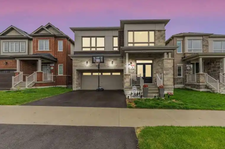 Step into this stunning 2-year-new home featuring a sleek modern elevation and over 3,000 sqft of thoughtfully designed living space. With 5+1 bedrooms and 5 bathrooms, there’s room for the whole family-and then some. The open-concept main floor is an entertainer’s dream, highlighted by an upgraded kitchen with quartz countertops, stainless steel appliances, and a seamless flow into the spacious family room. A rare main floor guest suite with a full bath and closet offers ideal accommodation for seniors or guests with mobility needs. Upstairs,you’11 find 4 generously sized bedrooms, including two with private ensuites and an additional full bath, perfect for growing families or hosting visitors. Enjoy peace and privacy as your backyard backs onto scenic green space and walking trails, bringing nature right to your door. All of this just minutes from Hwy 400, top-rated schools, shopping, and everyday essentials. A rare blend of style, space, and location, don’t miss your chance to make this home yours.