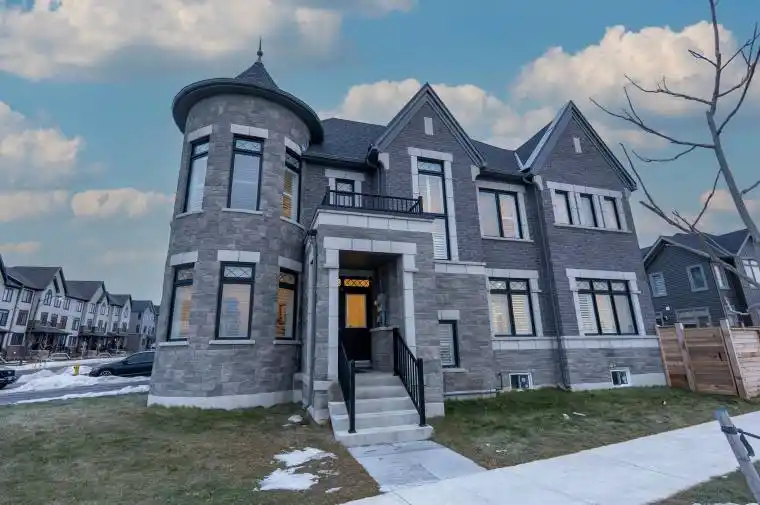 Welcome to this stunning 4-bedroom, 4-bathroom residence situated on a premium corner lot with an impressive 57.94 ft frontage, offering unobstructed, breathtaking views of the Toronto skyline. This exceptional home showcases high-end finishes throughout and is designed for both elegance and everyday comfort. The open-concept main floor features soaring ceilings, rich hardwood flooring, and a gas fireplace that anchors the space with warmth and style. The gorgeous eat-in kitchen is a true showpiece, complete with an elegant backsplash, brand new stainless steel appliances, and a bright breakfast area finished with marble flooring. The breakfast area offers direct walkout access to the fully fenced backyard, perfect for entertaining or family enjoyment.Upstairs, the luxurious primary retreat impresses with a spa-like 5-piece ensuite, two closets, including a large walk-in closet, offering ample storage and comfort. Each of the remaining generously sized bedrooms features its own private ensuite, providing convenience and privacy for family and guests alike. Additional highlights include parking for up to 6 vehicles, a double-car garage, and an abundance of natural light thanks to the home’s elevated position and corner-lot exposure. Ideally located just 1 minute to Highway 407 and 5 minutes to Costco, major big-box stores, restaurants, and banks. Close to school bus routes, public transit, and only minutes’ drive to Ontario Tech University-this home offers an unbeatable combination of luxury, location, and lifestyle. A rare opportunity to own a refined home with spectacular views, generous frontage, and unmatched accessibility.