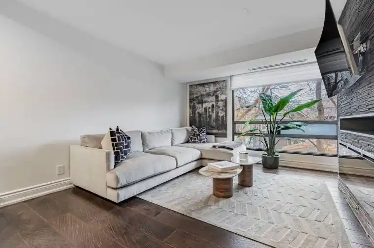 Welcome to this elegant, fully renovated, furnished 2-bed, 2-bath condo in the vibrant heart of Forest Hill Village. This 900 sq ft, condo designed open-concept residence offers contemporary comfort and stylish finishes. A custom kitchen features high-end appliances incl. full-size JennAir cooktop, oven, fridge, + Miele dishwasher, complemented by luxurious marble countertops and rich hardwood floors. Floor-to-ceiling windows + automatic blinds flood the space with natural light, creating a bright, welcoming atmosphere. The living area boasts custom built-ins, an elect. fireplace, + ample storage, ideal for entertaining or relaxing. The primary bdrm. incl. custom closets and an ensuite with a glass-enclosed shower, a soaking tub, & double sinks, offering a private retreat. In-suite laundry with full-size W/D makes daily living effortless. The suite includes 1 parking Spot + an oversized full walk in storage locker for convenience. Bi-weekly cleaning is included, providing a hassle-free lifestyle. Amenities: a beautifully renovated indoor pool, sauna, gym, stylish party room, and an expansive outdoor terrace with BBQs ideal for social gatherings or outdoor leisure + visitor parking, and 24/7 security. The location is perfect for outdoor enthusiasts: near Nordheimer Ravine, Beltline Path, and numerous parks, perfect for jogging, walking, or relaxing amidst nature. Enjoy the serenity of small parks in close proximity. Its walking distance from St. Clair West subway, grocery stores, trendy restaurants. The vibrant neighborhood offers a mix of urban amenities and peaceful green spaces, making it ideal for professionals, small families, or anyone seeking a premium lifestyle in Toronto’s sought-after Forest Hill Village. Experience the best of city living with nature at your doorstep in this exceptional residence.