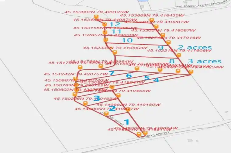 Vacant Land for lease on Camel Lake Road in Bracebridge. $100 per month per acre, 15 acres available if needed. Except for spots 8 (3 acres) and 9 (2 acres), all the other spots are 1 acre. Frontage on Camel Lake Road. Surrounded by lush woodlands, a secluded driveway meanders throughout the entire land. Close to Muskoka lakes, 20 mins drive to Bracebridge, 25 mins drive to Huntsville,16 mins drive to Hatchery Falls.