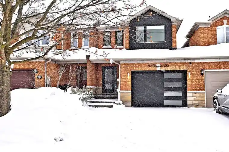 Executive designer dream home in Dufferin Hills, linked only by the garage, similar to a semi-detached property. Features a garage with access to the backyard and home, plus an extended driveway with no sidewalk that fits up to four cars. The modern eat-in kitchen includes wainscoting, custom seating, quartz countertops, stainless steel appliances, and a walk-out to a fully fenced backyard. Hardwood floors run throughout the main and second floors. The primary bedroom features a private ensuite bathroom. The finished basement offers a media and entertainment room, complemented by LED pot lights throughout. Ideally located just 1 minute from Forest Run Public School, 3 minutes from Stephen Lewis Secondary School, and minutes to Highway 407, Rutherford GO Station, parks, public transit, grocery stores, restaurants, pharmacies, banks, shopping, and more.